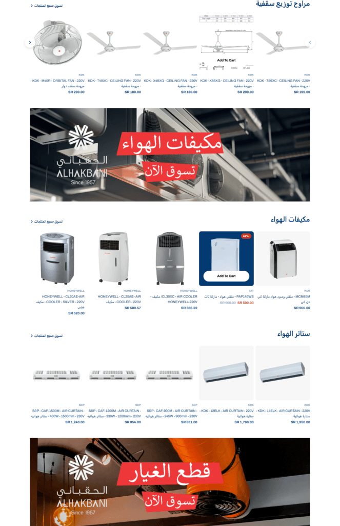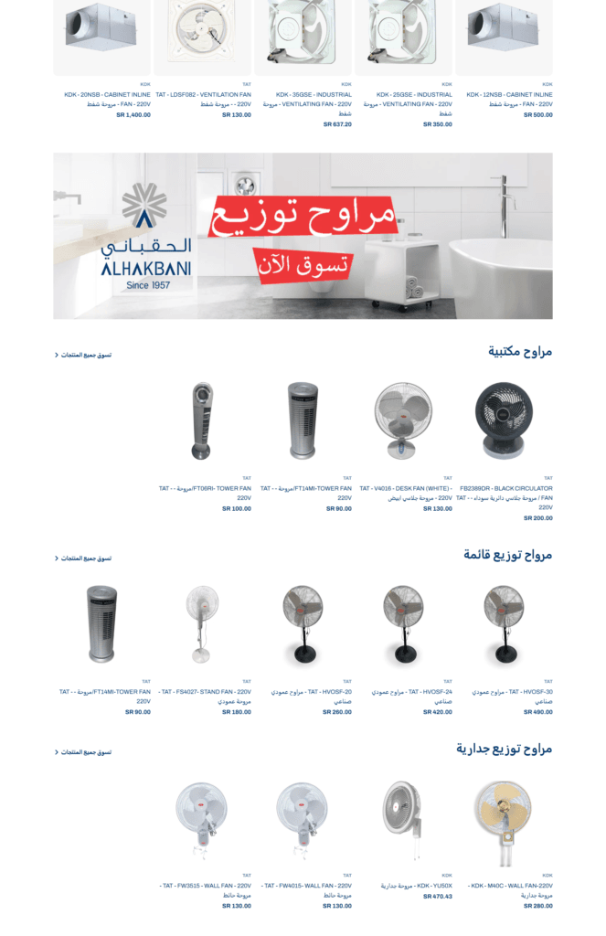 يشمل المتجر فئات متنوعة مثل مراوح الشفط، الدفايات الخارجية، مكيفات الهواء، المراوح الدورانية، منقيات الهواء، وغيرها الكثير، مع عروض حصرية وخصومات جذابة.